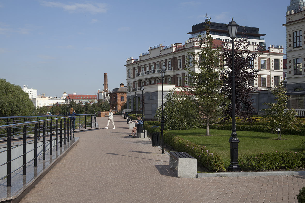 В 2019 году в Екатеринбурге завершили благоустройство набережной реки Исеть от улицы Малышева до Куйбышева. К тому времени пространство по левую сторону реки начали активно застраивать.Так появились три особняка в честь екатеринбургских купцов 19 века — «Казанцев», «Рязанов» и «Баландин» (проект бизнесменов Сергея и Олега Флегановых), клубный дом Riviera, штаб-квартира РМК. Открылись и новые заведения — к примеру, ресторан итальянской кухни Gavi и винная лавка «Кино Домино».