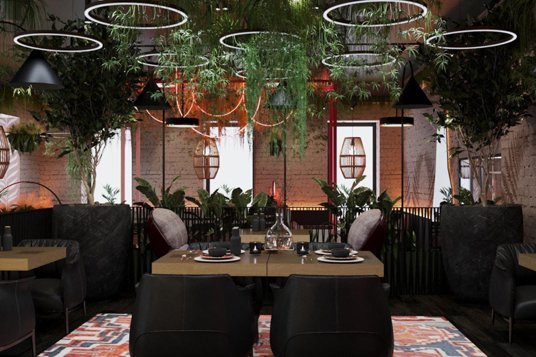 Ресторан — двухэтажный и работает в двух форматах. На первом расположено кафе, где с восьми утра кормят завтраками, на втором — камерное ресторанное пространство (его открывают в 12:00). В меню два основных акцента — Испания и Паназия. На закуску здесь среди прочего предлагают подборку тапасов, в числе которых — маринованные сардины с томатной сальсой, бычьи хвосты с луковым мармеладом и всевозможные сэндвичи. На второе — разнообразное мясо на гриле, собу с цыпленком в азиатском соусе, спагетти из кальмара и филе трески с сальсой из оливок и белой фасолью.